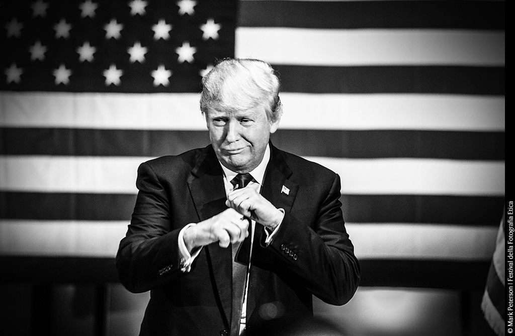 Nel corso degli ultimi due anni ho fotografato i candidati alla Presidenza mentre prendevano parte a raduni, incontravano gli elettori e chiedevano il loro sostegno. Iniziai nel 2013, appena prima del blocco delle attività amministrative del governo, ad un raduno del Tea Party al Campidoglio. I politici inveivano contro il presidente e l’Affordable Care Act, la riforma sanitaria da lui voluta – un’anticipazione degli slogan che sarebbero entrati successivamente nel ciclo delle notizie.